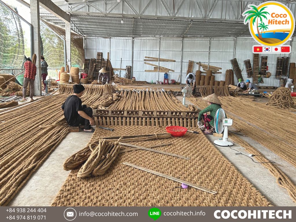 コイアマット は韓国で多く適用されていますが、韓国で流通しているコイアマット 製品はベトナム産製品です。 ベトナムのコイアマット は100%手作業で作られた製品です。